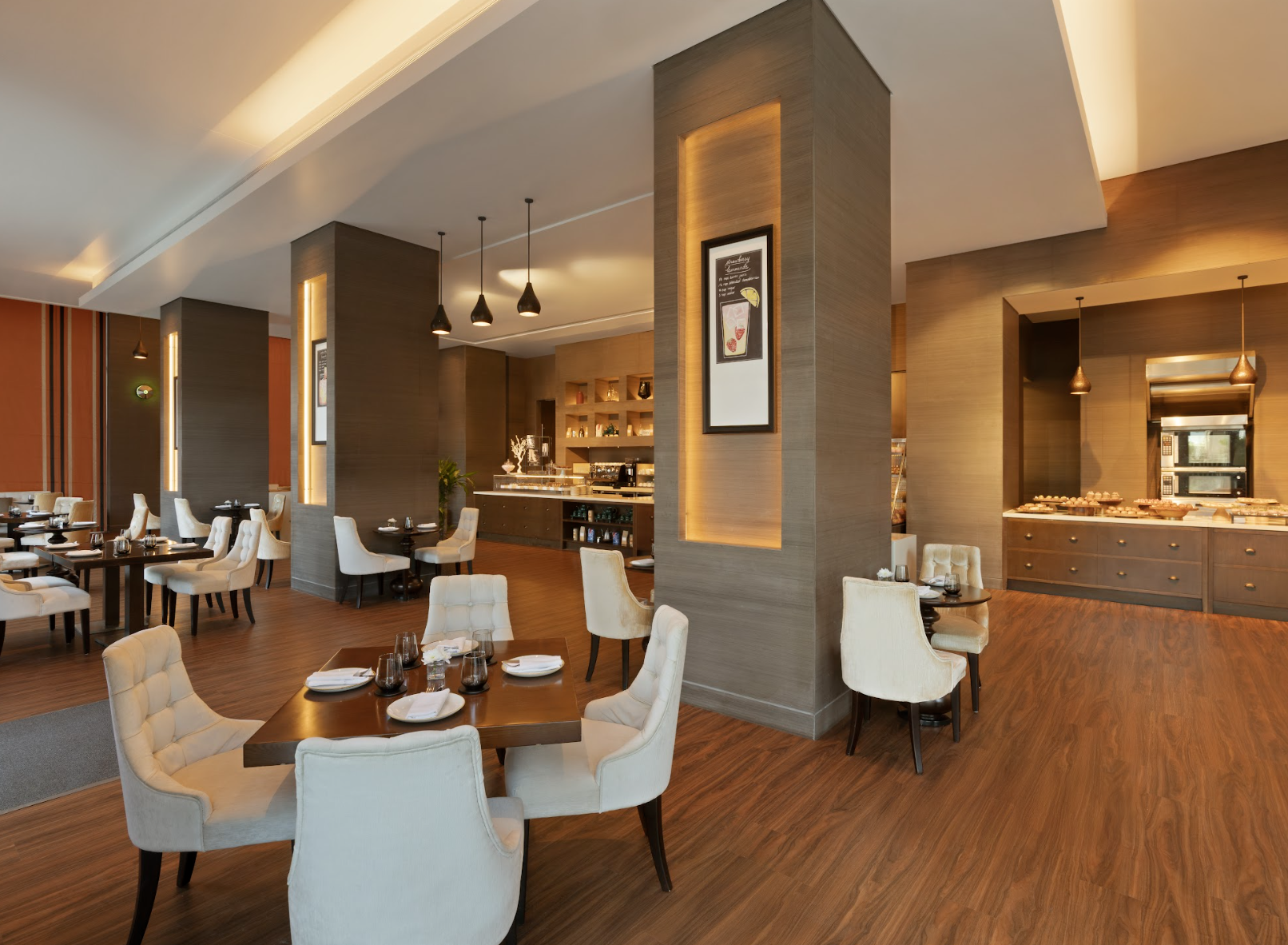 Geniet van een selectie warme en koude dranken, ambachtelijke patisserie en unieke chocoladecreaties in ons boetiekcafé in de lobby. Kies uit gezellige banken binnen of een levendig terras met uitzicht op het resort en de Arabische Golf. Van 13.00 tot 20.00 uur kunt u genieten van live entertainment met cello, viool, piano en stijldansen. De perfecte plek om te ontspannen en u te laten verwennen.