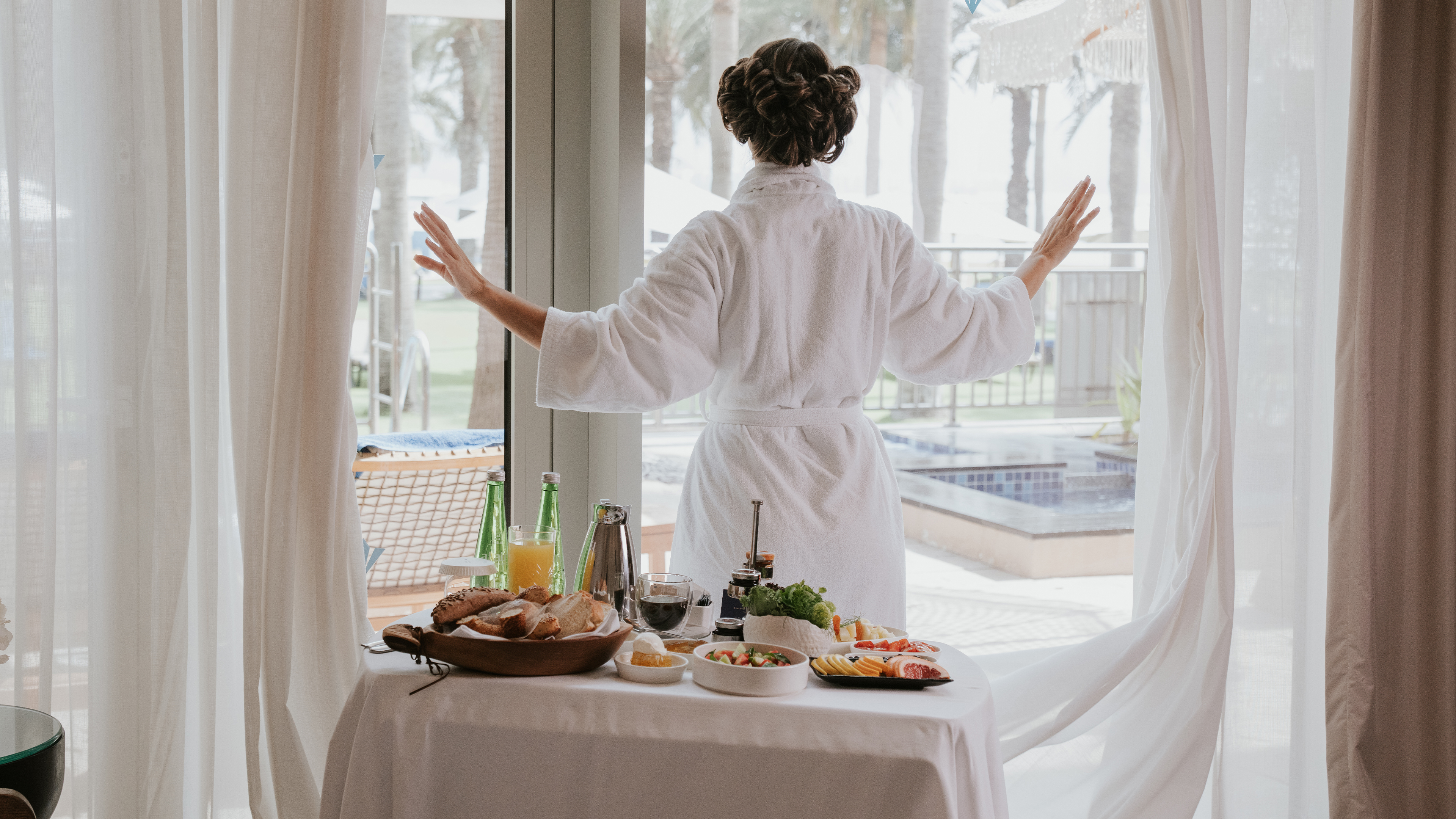 NIE SĄ WLICZONE W PAKIET ALL INCLUSIVE. Lokal oferuje całodobową obsługę oraz szeroki wybór dań kuchni międzynarodowej. Goście mogą delektować się posiłkami w zaciszu własnego apartamentu o dowolnej porze dnia i nocy. Usługa ta jest idealna na śniadanie do łóżka, nocne przekąski lub rodzinne posiłki w relaksującej atmosferze.